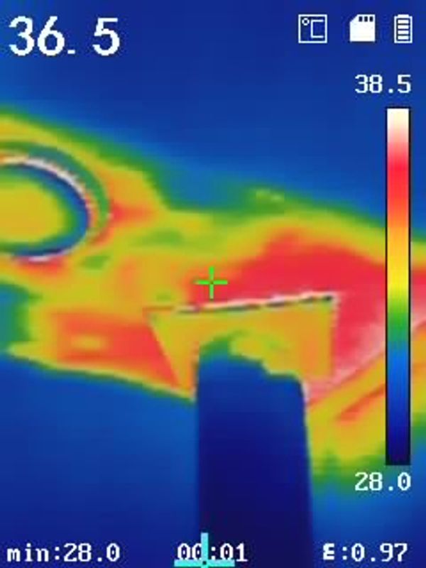 Missing Insulation in ceiling can add an extra 10 degrees to room temperature. Blue sections are normal ranging to red that has insulation missing adding 10 extra degrees to ceiling temp.